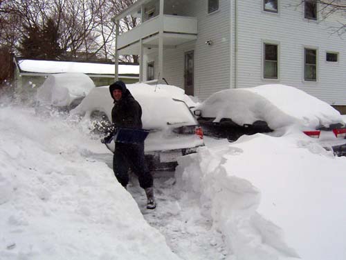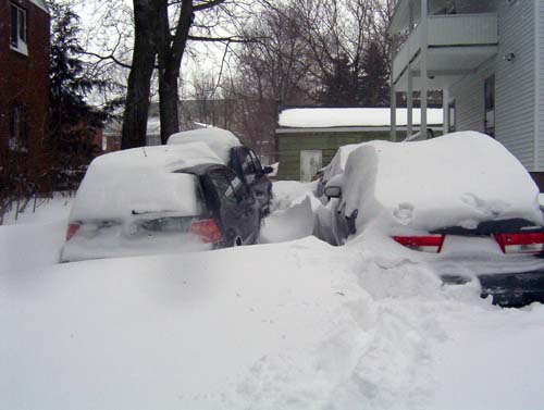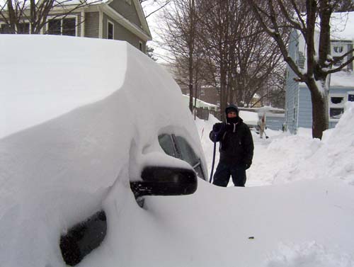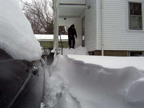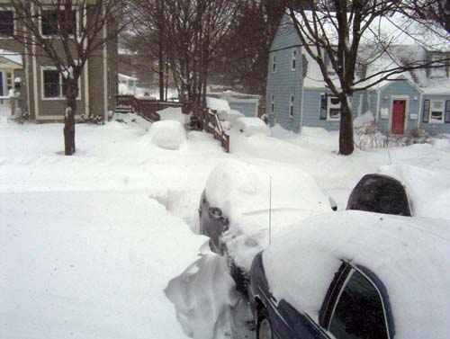 at least the snow was light--. I waited till Monday to dig out. It was much warmer. It was really hard to figure out how much snow you got. Some places it looked like a couple of feet but then around some cars the snow came up to the windows.