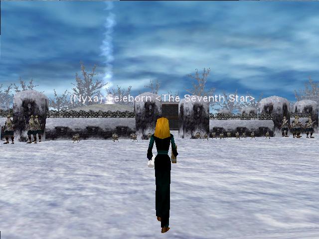 ~~Been playing far too much Everquest but well...when you have enough time off and you have a good time doing it... Here's a great pic of my character (lvl 42 enchanter) in front of a giant fort right before the giants get ready for battle. I've always been a gamer...PC games, video games, playstation. Started early on when my father brought Zork home on a behemoth dinosaur of a PC back in the very very early 80s. Now the games are so amazing...full worlds with thousands of people playing, their own politics and economies. I'm always amazed at the new developments on the gaming front. I wonder what it will be like when I'm old and grey...no bingo for me...just plug a game into my spinal column and I'll be happy.