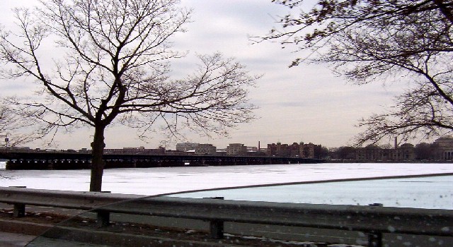 This was taken from the car as we were speeding along Storrow drive (that's the MIT bridge) after picking out our wedding rings. Here's what the ring SORT of looks like...it's this style, but a thicker band and the diamonds aren't in a line, but staggered. Joe's is a simple band--no diamonds for my manly man!